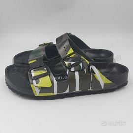 BIRKENSTOCK X VALENTINO GARAVANI SANDALI ARIZONA CAMOUFLAGE VERDE E LIME IN PELLE CON SUOLA IN GOMMA. N. 41. CONDIZIONI BUONE.