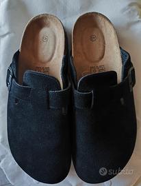New Moda Comodissime Ciabatte da uomo/donna con plantare scamosciato beige, colore Nero Numero 43 - Tomaia in morbida pelle scamosciata. - Suola in sughero. - Chiusura con cinturino regolabile. - Nuove.. Non accetto proposte di acquisto a prezzo più basso, evitate di fare offerte, perché saranno rifiutare.. Prezzo Fisso