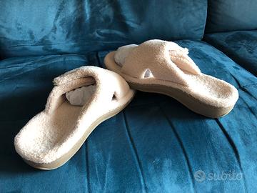 Ciabatte donna Vionic relax. Colore beige. Esterno pelliccia sintetica. Plantare sagomatoin sughero 100%, Anatomicamente corretto. N.39