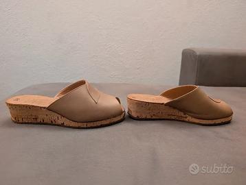 Ciabatte Zatteroni Donna PriPenPes Made in italy beige in cuoio e sughero, modello vintage anni 80