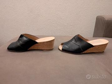 Ciabatte Zatteroni Donna PriPenPes Made in italy blu in cuoio e sughero, modello vintage anni 80