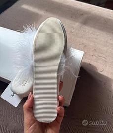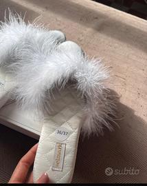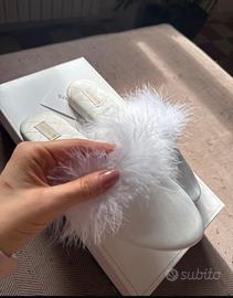 Costo sul sito di Selmark 48.35€ (ultima foto). Pantofole vellutate e eleganti e color avorio con piume. Nuove con etichetta e scatola.