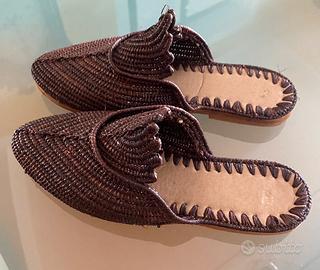 Babouche di rafia naturale intrecciata a mano, originali marocchine; come nuove. Suola in vero cuoio. Numero 35