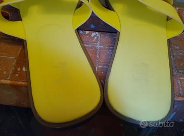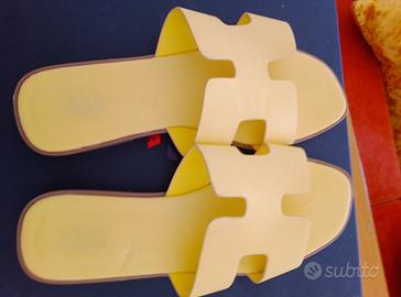 Ciabatte basse per donna, tipo modello Hermes, con punta quadrata.