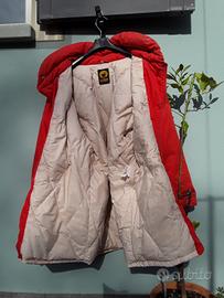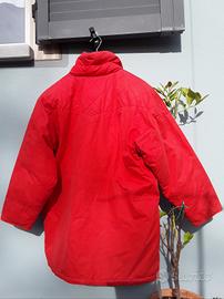 Piumino marca Ciesse in vera piuma d'oca, direttamente dagli anni '80, rosso con alamari, cerniera e 4 tasconi. Taglia 46. Soffice. Usato ma tenuto benissimo: un po' di calo di colore e di imbottitura per i lavaggi e la perdita naturale delle piume. Spalle 50cm. Larghezza tipica di quegli anni ora riproposti nella moda.