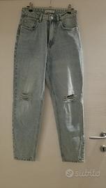 Jeans nero paul&bear Modello mom Taglia eur 36 Larghezza vita: 35cm Larghezza fianchi: 48cm Lunghezza (da interno coscia): 62cm Jeans blu scuro bershka Modello mom Taglia eur 38 Larghezza vita: 37cm Larghezza fianchi: 48cm Lunghezza (da interno coscia): 63cm Jeans azzurro/grigio divided h&m Taglia eur 38 Larghezza vita: 35cm Larghezza fianchi: 36/36cm Lunghezza (da interno coscia): 63cm Jeans blu (con strappi) bershka Modello mom Taglia eur 36 Larghezza vita: 35cm Larghezza fianchi: 48cm Lunghezza (da interno coscia): 63cm Jeans chiaro calliope Modello mom Taglia eur 36 Larghezza vita: 33cm Larghezza fianchi: 45cm Lunghezza (da interno coscia): 66cm