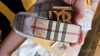 Cinta - cintura Burberry uomo/unisex. Vendo prodotto nuovo mai indossato. Qualità Made in Germany. Lunghezza 125cm. Qualità 100% fedele. fornito di scatolina in cartoncino, shopper Burberry con laccetti, punzone per foratura, card e sacchetto in stoffa.