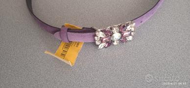 Cinta donna Cesare Paciotti camoscio viola cm90 altezza 18mm fibbia Swarovski ottima