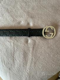 Cinta gucci nera pelle gomma in perfette condzioni misura 110 cm stemma doppia g in metallo