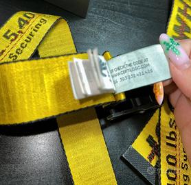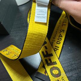 cinta gialla e nera con cuciture rosse e fibia nera