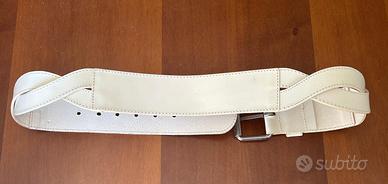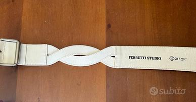 Cinta vintage con motivo di intreccio, tg 42. Con 6 fori per differenti misure. Misura tra ardiglione e foro centrale (terzo foro dall'ultimo) cm 77.