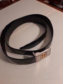 vendo cintola di pelle nera coccodrillo e fibbia ottone lucido e patinato