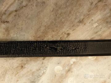 Vendo cintura originale Alberto Guardiani usata. È nero lucido e presenta qualche grinza vicino ai fori. La fibbia è acciaio e pelo di cavallino nero, come si vede in foto. È lunga 115 cm.