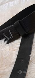 legante cintura firmata Armani Jeans, un classico intramontabile del Made in Italy. La pelle è di alta qualità, nera e robusta, perfetta sia per un look casual con i jeans che per uno stile più ricercato.