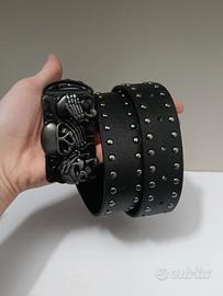 Realizzata in ecopelle nera con borchie metalliche lungo tutta la fascia e fibbia oversize con tre teschi in rilievo, lavorati nei dettagli e con finitura scura lucida. La fibbia è grande e scenografica, perfetta per chi ama accessori forti e di carattere. La cintura è resistente, regolabile grazie ai fori multipli e comoda da indossare. Sta benissimo con jeans, cargo, pantaloni neri, gonne o outfit total black. Ideale per look gotici, punk, biker, grunge o streetwear. Condizioni: ottime, usata pochissimo. Colore: nero Dettagli: borchie + fibbia 3 teschi in rilievo Vestibilità: regolabile Accessorio perfetto per dare subito personalità all’outfit 🔥 #cintura #cinturanera #gothicstyle #gotico #darkstyle #punkstyle #rockstyle #bikerstyle #alternativestyle #teschio #skull #borchie #studs #metalstyle #streetwear #outfitdark #totalblack #grunge #emo #y2k #festivalstyle #concertlook #unisex #vinteditalia #accessoridonna #accessoriuomo #goth #gothbelt