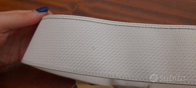 Elegante cintura Lancetti in colore bianco con una fibbia dorata. - Design a fascia larga. - Texture a trama. - Dettaglio logo. - Chiusura con fibbia.