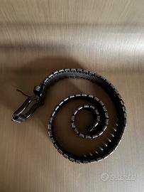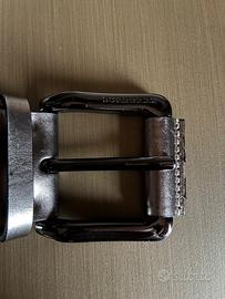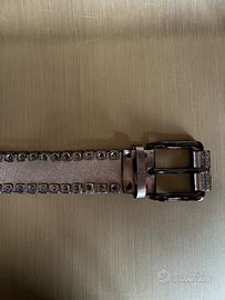 Cintura Burberry in pelle argentata. Misura 80; lunghezza 96,5 cm; larghezza 5 cm.