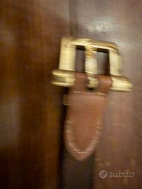 Cintura in cuoio da donna, color cuoio chiaro e fantasia logo, fibbia dorata, cm 95 lunghezza e 2.5 altezza. Mai indossata