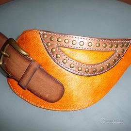 Originalissima cintura in pelle, color cuoio e arancio, marca Camomilla. NUOVA, mai indossata!