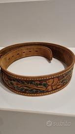 Cintura in cuoio dipinta a mano anni ottanta originale made in USA. Lunghezza 90 cm