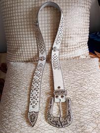 In vendita bellissima cintura in cuoio con fibbia di grandi dimensioni riempita di brillantini,lunghezza senza fibbia 1 metro.