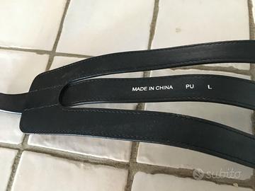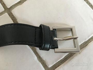 particolare cintura alta e sagomata a fascia color marrone scuro con fibbia argentata