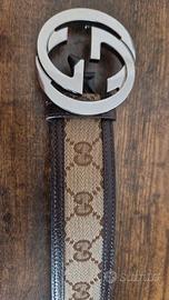 Cintura da donna GUCCI originale, misure 90x36, motivo GG Gucci, tessuto di colore beige e pelle marrone con dettagli marroni, fibbia di colore argento, regolabile.