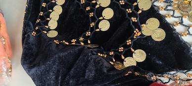 Cintura in velluto con monetine, nera, larga. Per altro sulla danza del ventre, ho altri oggetti in vendita.