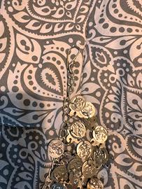 Bellissima cintura di monetine ( sonore!!) per danza del ventre , e’ un regalo dall Egitto , mai utilizzata. Misura regolabile a qualunque taglia