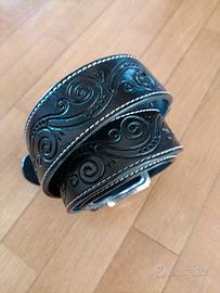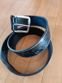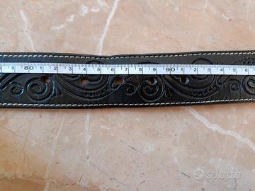 Articolo artigianale: cintura di vera pelle decorata a mano su tutta la lunghezza. Buchi passanti tra gli 80 e i 90cm di circonferenza circa. Consegna anche a mano nella zona di Pieve di Soligo