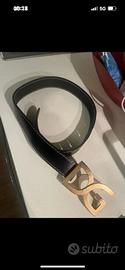 Cintura vintage in pelle nera con fibbia grande dorata DG.Larghezza 4cm.Misura 70cm(dall’attaccatura della fibbia al foro centrale).Senza scatola.