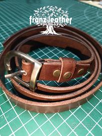 Cintura da donna i cuoio testa di moro, fatta a mano da me nel mio laboratorio FranzLeather. Con inserti e borchie. Cuoio grana liscia groppone. Spessore 4 mm Lunghezza 100 cm Larghezza 2,5 cm