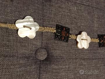 Cintura donna in corda, fiori in madreperla