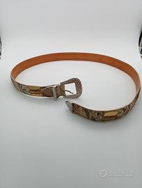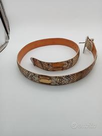 cintura donna in vero pitone originale con fibbia ricoperta di cristalli. Tutto fatto a mano da artigiani italiani. Misura lunghezza cm 115 e altezza cm. 3,5