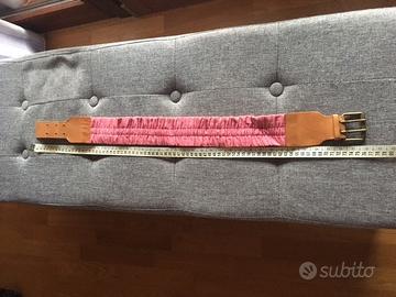 Cintura donna vintage rosa stoffa elastica e cuoio