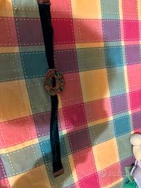 Cintura con chiusura in legno, nastro in velluto verdone e pietra grande al centro per valorizzare la vita