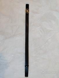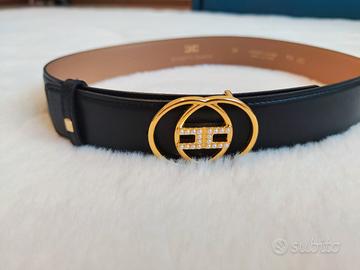 Cintura Elisabetta Franchi originale, nuova e mai indossata. Caratterizzata da una splendida fibbia dorata con logo e dettagli in micro-perle. Colore nero, interno color cuoio. Taglia 38. Realizzata in pelle sintetica di alta qualità. Perfetta per impreziosire abiti o cappotti. Senza segni di usura.