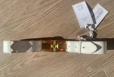 Cintura color panna e oro, marchio Elisabetta Franchi. Nuova con cartellino. Taglia 42.