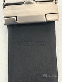 Cintura Emporio Armani , la cintura è originale presenta dei segni di usura dovuti al suo utilizzo sulla parte metallica, la cintura presenta un danneggiamento sulla parte della punta finale come si può vedere nelle ultime foto , la cintura misura 130cm di lunghezza.