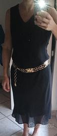 Vendo cintura gioiello color oro con maglie tonde e placche rettangolari lavorate con motivo floreale in rilievo.
