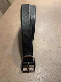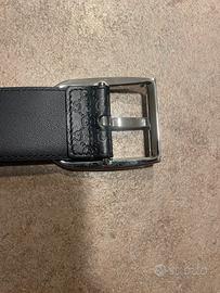 Cintura Gucci in vera pelle con monogram classico GG in rilievo, di colore nero e fibbia argento.
