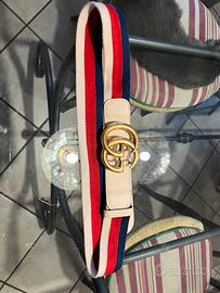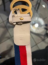 Bellissima cintura in tela , pelle e fibbia dorata , cm 90, di Gucci. Originale