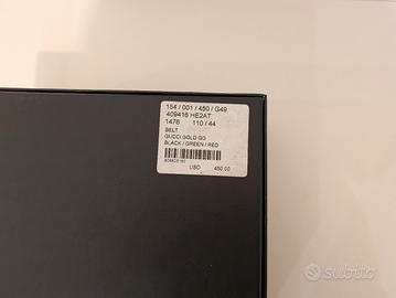 Vendo per cessata attività: Cintura Gucci Gold GG RED/GREEN/BLACK Tg. 110/44 L'articolo è nuovo, completo di scatola, dust bag e cartellini. Il prezzo consigliato lo potete vedere in foto e il prezzo richiesto è già ridotto, pertanto non chiedo di non provare a trattare del tutto, chiedo però di evitare offerte fuori scala che farebbero perdere tempo ad entrambi. Vendo solo tramite Subito, non accetto metodi di pagamento non tutelati (in ambo i versi). Per una taglia più piccola potete consultare il mio profilo, mi sto liberando di una cintura identica ma con altra taglia.