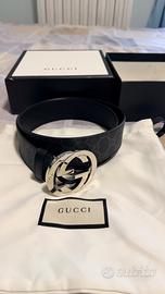 Vendo cintura Gucci in Tessuto GG Supreme nero e grigio, con finiture in pelle nera, 100cm lunghezza. PERFETTA! non ha difetti, ORIGINALE! comprata su sito ufficiale ! (Ho ricevuta) • Finiture color argento • Fibbia GG • Larghezza 4cm