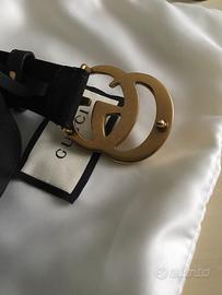 Vendo cintura Gucci originale in pelle nera con fibbia con doppia GG cm. 6x5 in perfette condizioni perché usata pochissimo. La cintura é lunga cm. 85 esclusa la fibbia ed é alta cm. 4.