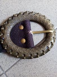 Vendesi cintura GURU , colore marrone, con occhielli e sfilacciatura di decorazione. Fibbia in metallo decorata lunga 10 cm. Originale, usata.