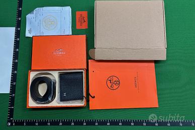 Cintura Hermès in pelle, nera, 110 cm con cinturino nero opaco + portafoglio Hermès in pelle, nero, con simbolo in basso a destra, foderato all’interno.