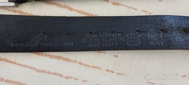 Cintura realizzata in cuoio con dettagli in metallo. Sergio Tacchini. Made in Italy. Lunghezza cm 95/110, Larghezza cm 4.