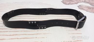 - Materiale: cuoio nero e metallo.