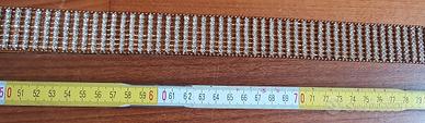 cintura realizzata con catene di metallo con strass incastonati, lunga circa 100 cm, con fibbia, particolari nelle foto
